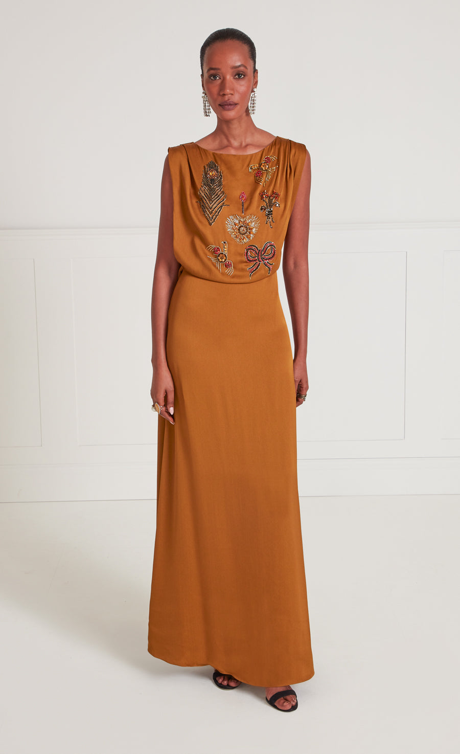 Exuding exemplary Temperley glamour, the Adalina Story is a masterclass in occasionwear, offering the full spectrum of dress shapes. Finished with standout embellishment, evocative of 1930s Schiaparelli surrealist jewellery, the Dyn Circle¡¯s abstract artworks and Milagros charms in Mexican folklore.