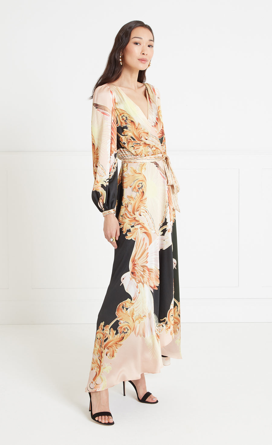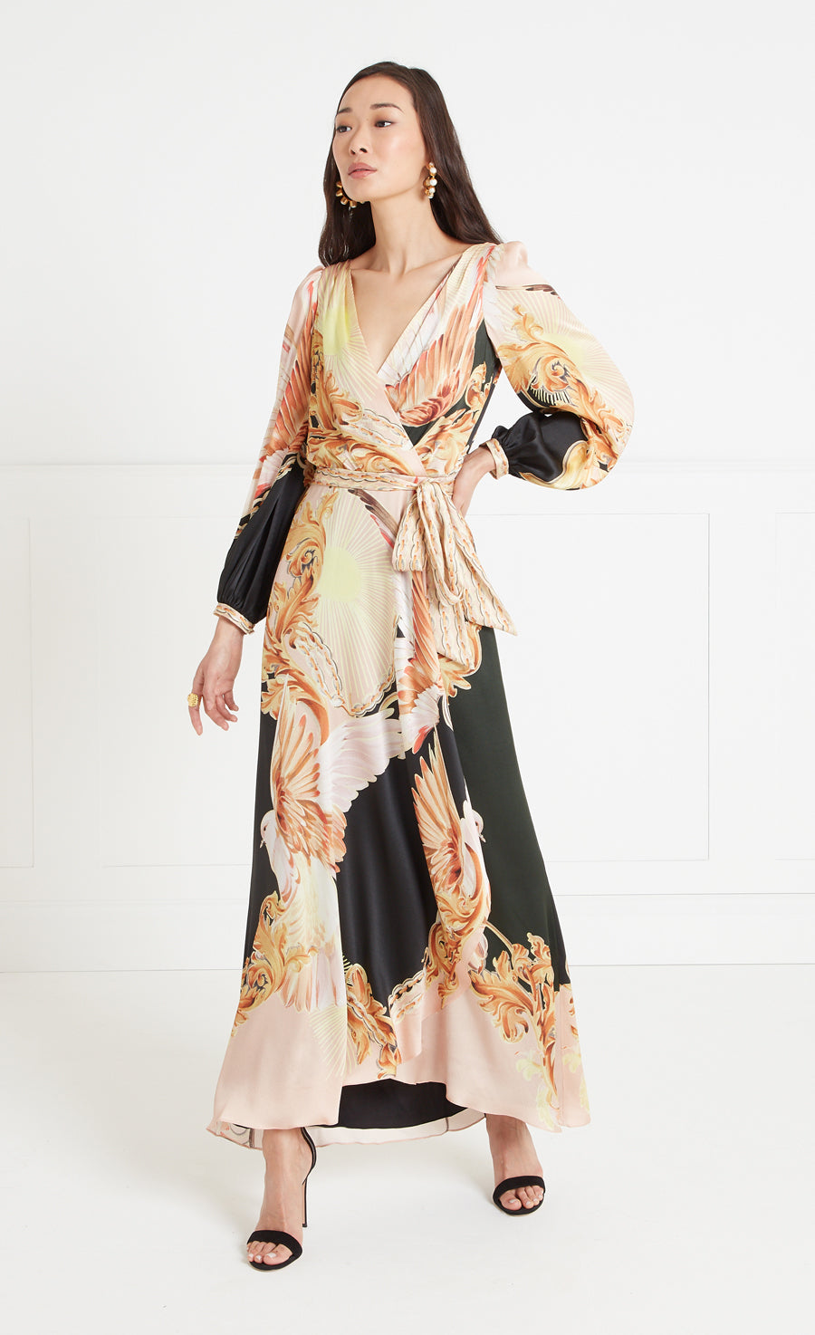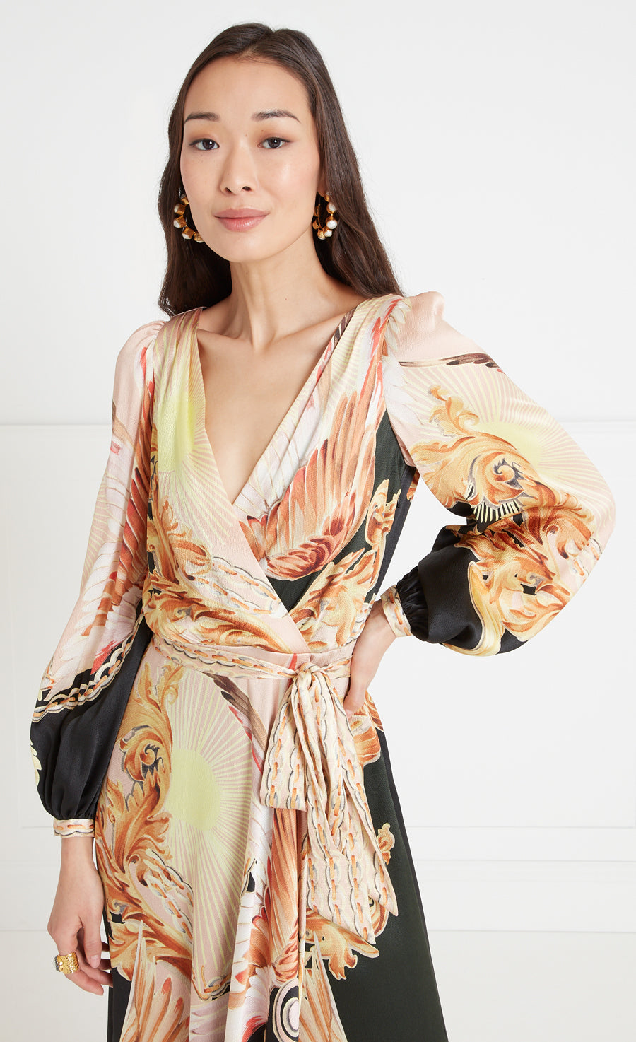 Impeccably cut and truly timeless, the Akira wrap dress is understatedly elegant ¡ª the classic silhouette elevated with relaxed puff sleeves and bow waist tie, cascading into a full, curved hem skirt.