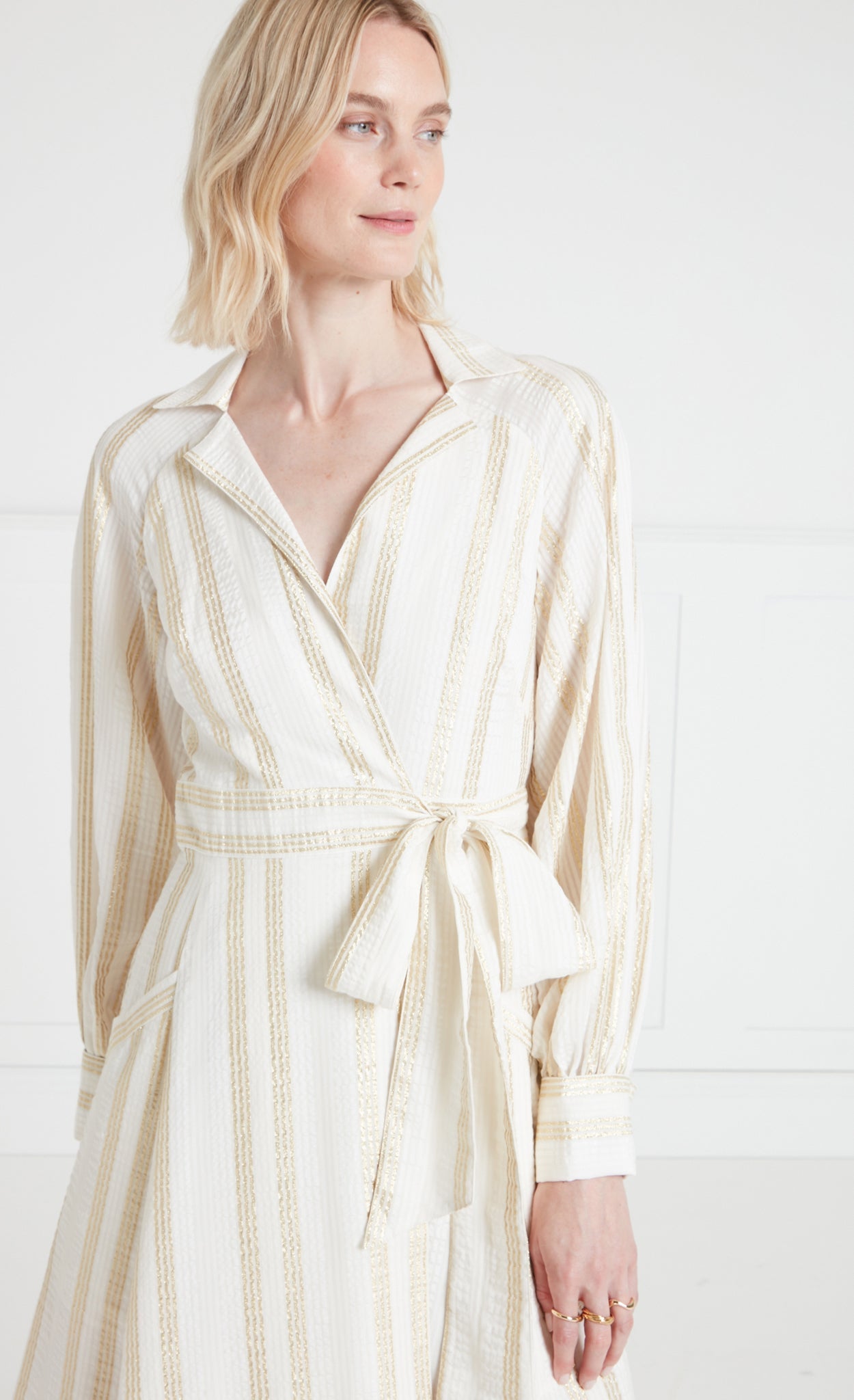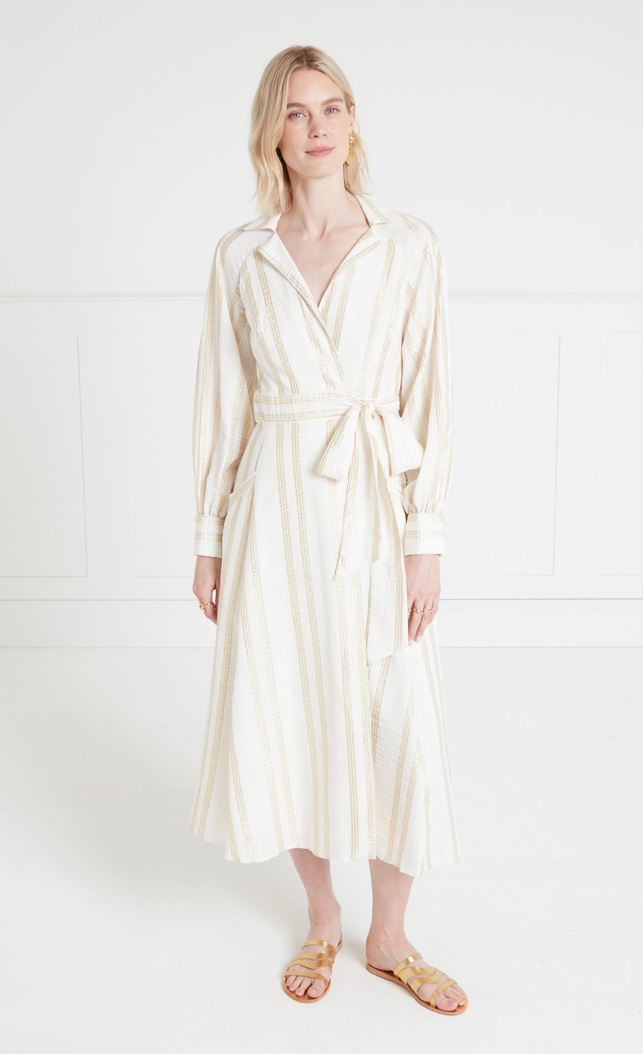 Benoto Wrap Dress - Cream/Gold