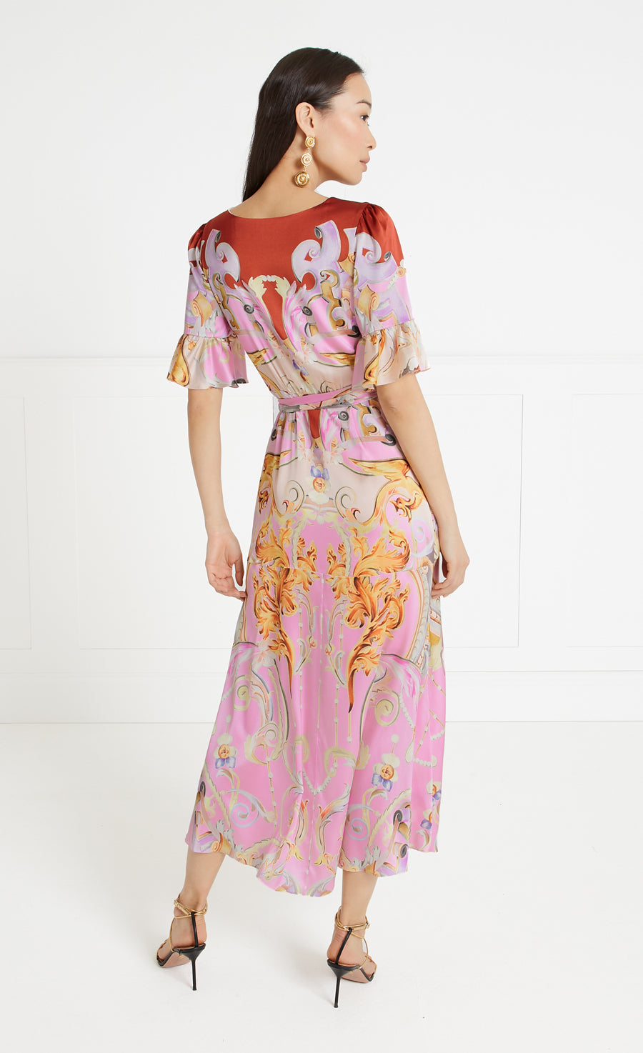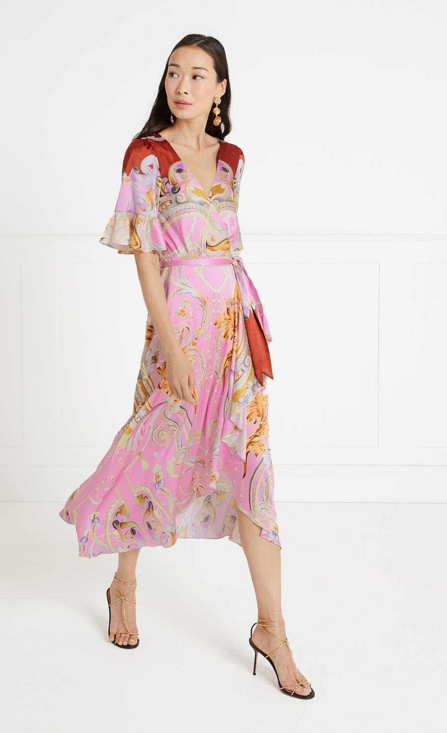 Carline Print Wrap Dress - Rose Pink