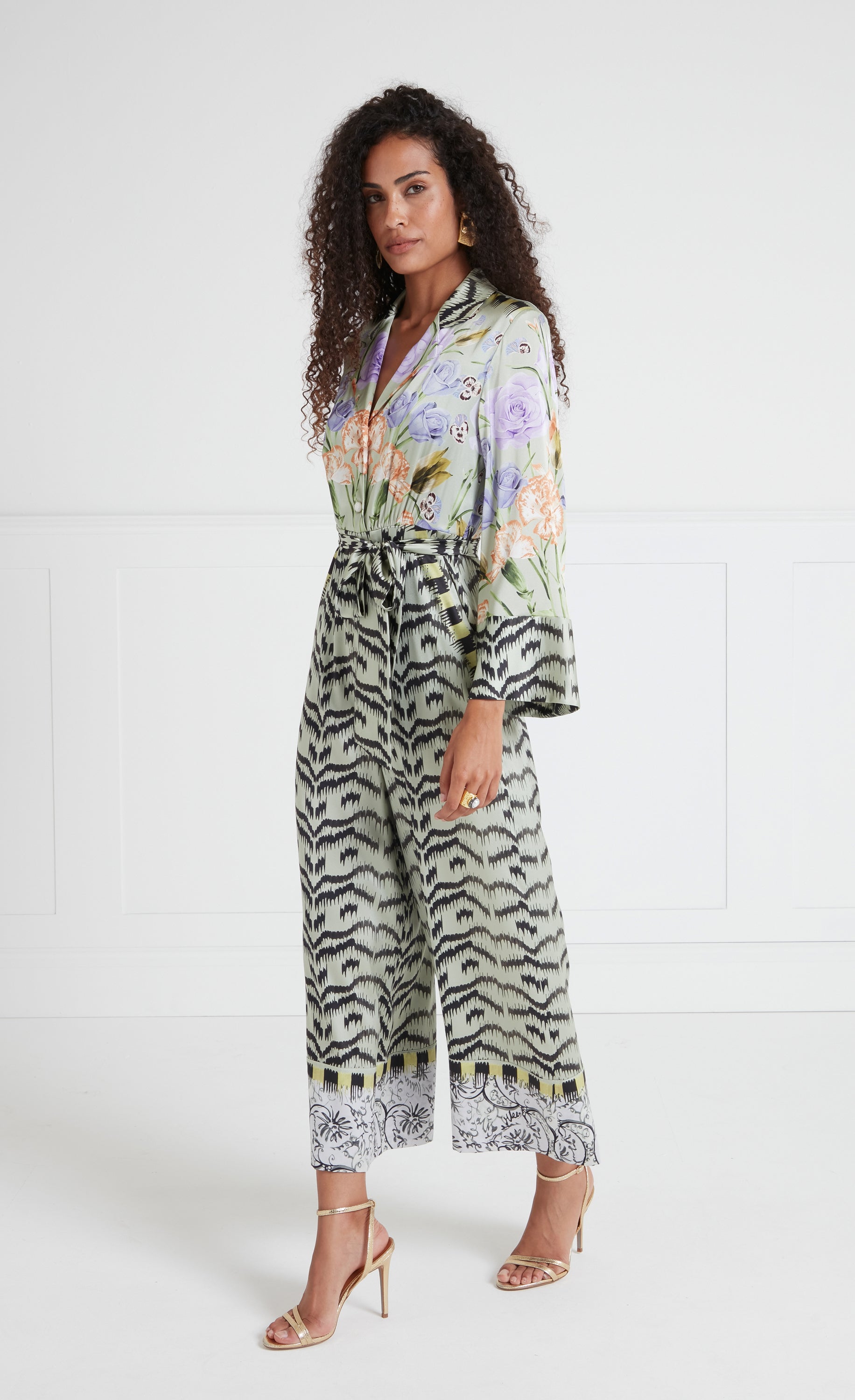 The impeccably tailored Cleo Jumpsuit is an impactful day or night style, a fine example of Temperley¡¯s signature engineered prints, crafted from butter soft stretch silk satin and made in Italy.