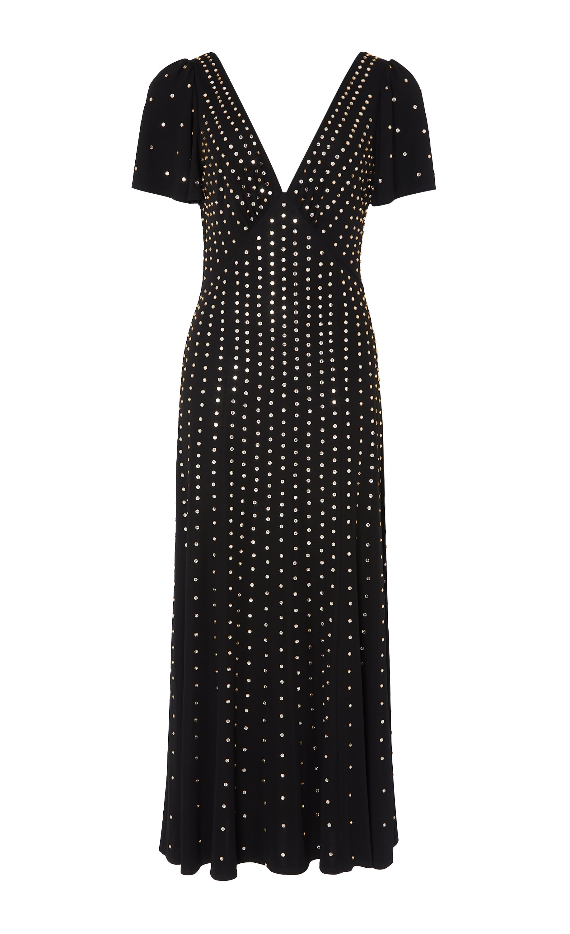 The viscose jersey used in these designs is sourced from a longstanding family business founded in the 1970s. This factory combines design sensibilities with craftsmanship, known for its high-quality control. The viscose provides a soft, breathable, and drapable quality, making it ideal for these embellished, figure-flattering pieces.