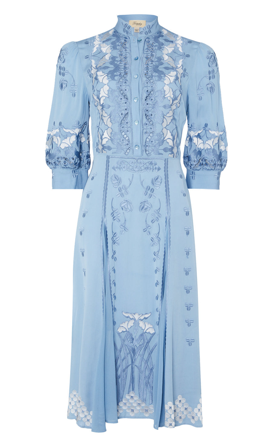 With distinct broderie anglaise cutout detailing giving it an artisanal feel, the Daphne story is a relaxed choice for cocktail party dressing. Inspired by the lavish art deco interiors and glassware in English country houses, the cut redolent of 1930s silhouettes, the styles pay homage the era while adding a modern Temperley twist.