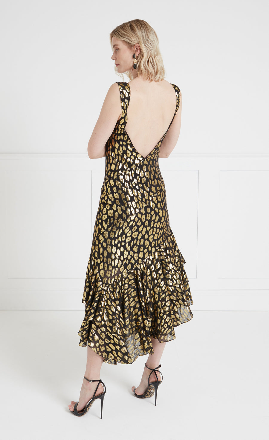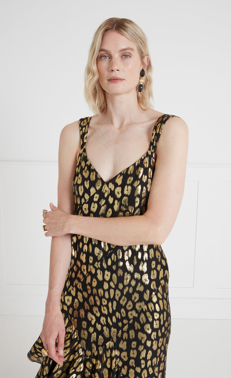 Signature Temperley, made from hypnotic lurex georgette, an exuberant approach to party dressing. A vision in lustrous leopard print jacquard, the three impactful styles in the Kyra story exude a free-spirited glamour, in keeping with the collection¡¯s mischievous mood. Ruffle details, playful puff proportions, slinky silhouettes: paying homage to late thirties eveningwear, modernised by the luxurious silk blend fil coup¨¦ in contemporary hues.