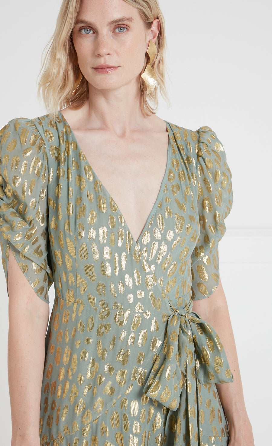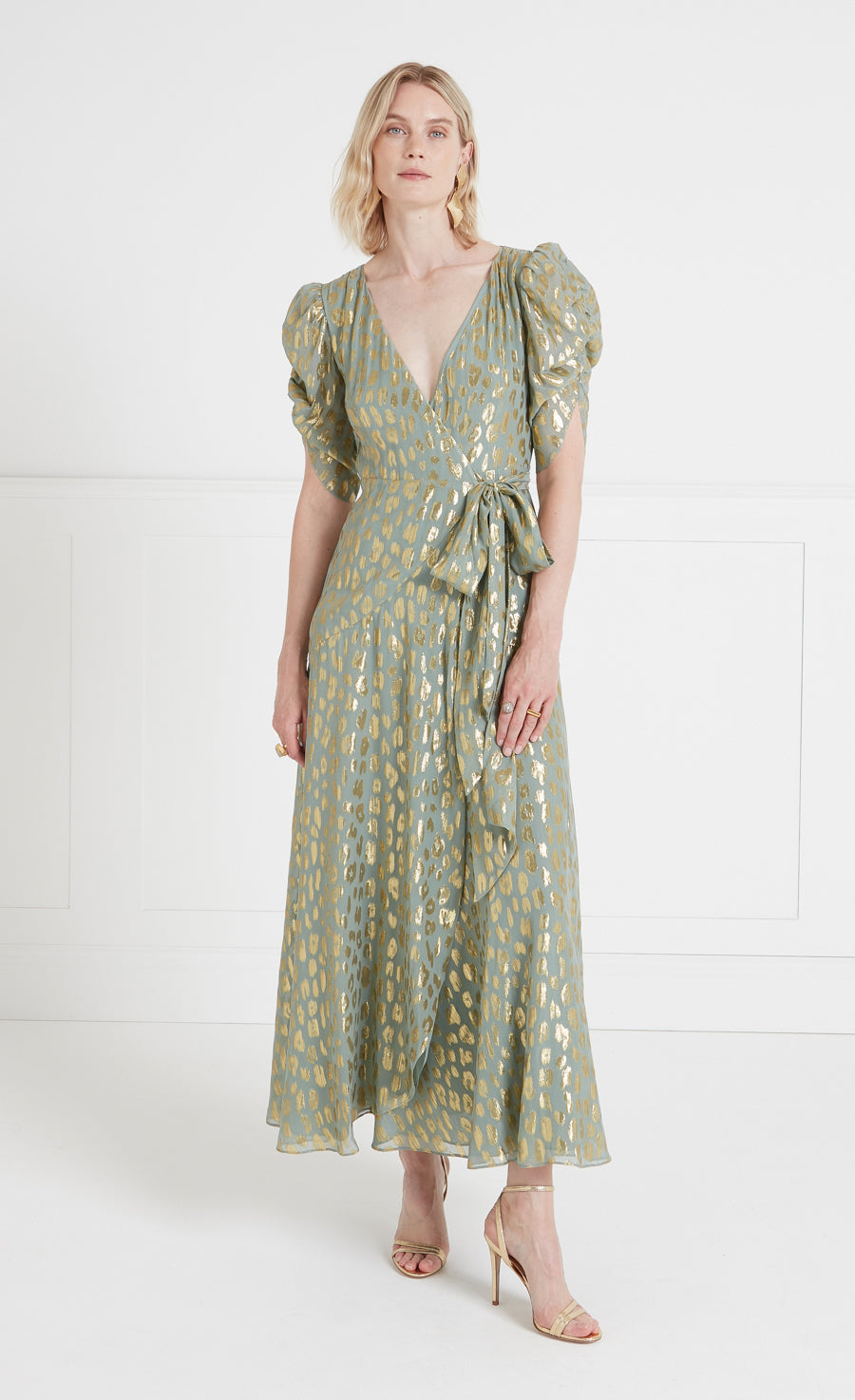 Classically elegant with an air of conviviality, playfully feminine details elevating the timeless style, the Kyra wrap dress makes an entrance. Statement sleeves ¡ª a nod to the thirties puff revival, a cinching waist bow and a voluminous skirt, exuding a frivolity that¡¯s made for the dance floor.
