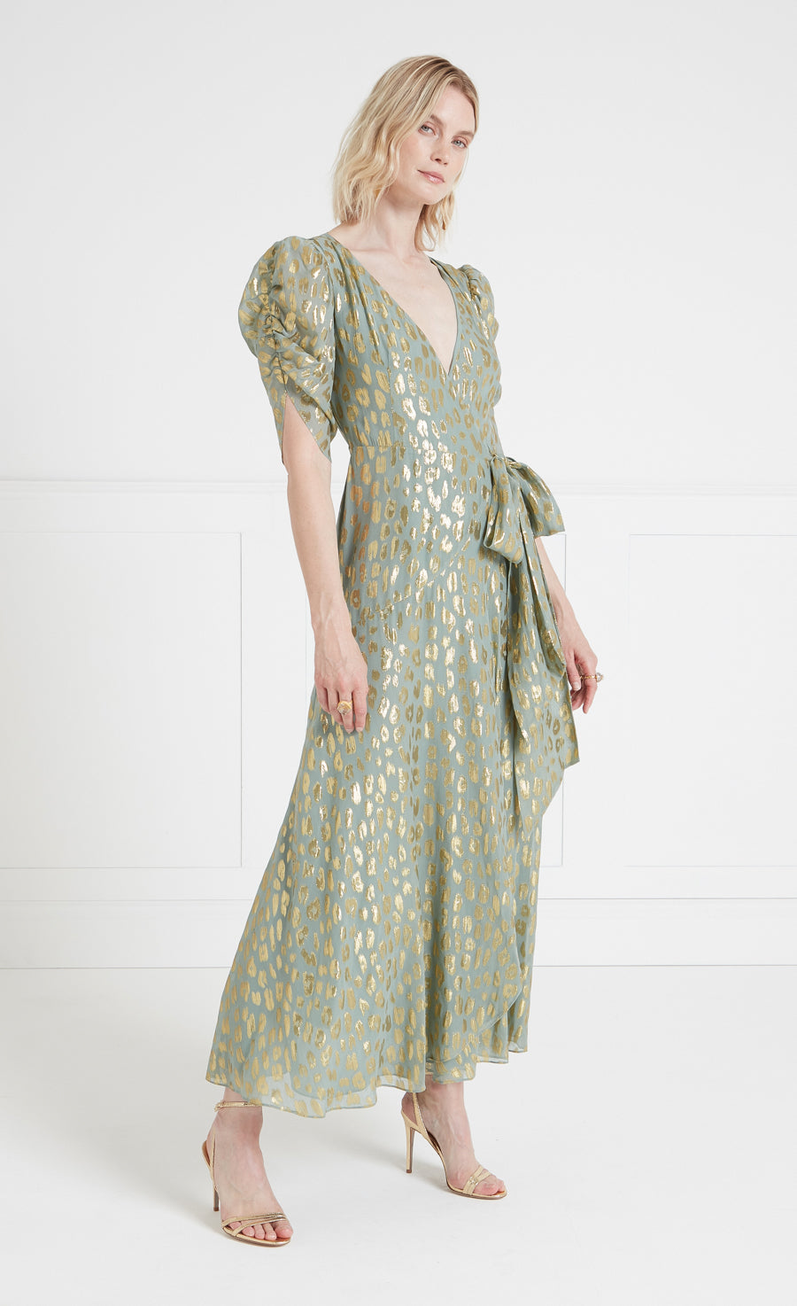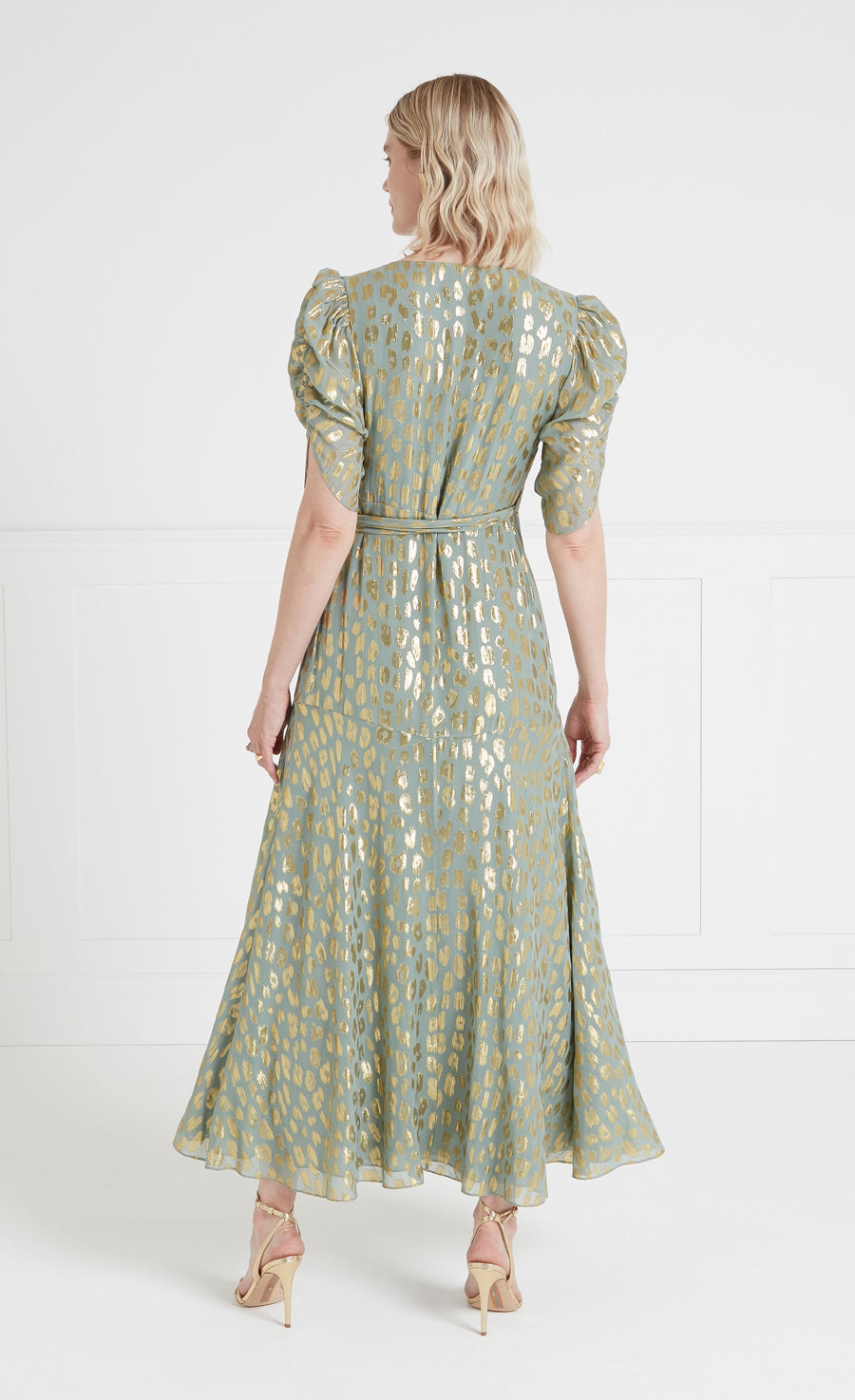 Signature Temperley, made from hypnotic lurex georgette, an exuberant approach to party dressing. A vision in lustrous leopard print jacquard, the three impactful styles in the Kyra story exude a free-spirited glamour, in keeping with the collection¡¯s mischievous mood. Ruffle details, playful puff proportions, slinky silhouettes: paying homage to late thirties eveningwear, modernised by the luxurious silk blend fil coup¨¦ in contemporary hues.