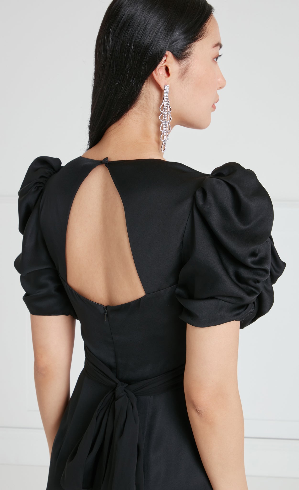 Crafted from a premium crepe satin fabric with a glossy satin finish ¨C its soft, velvety touch enhances the luxurious appeal, combining subtle sensuality and elegance.